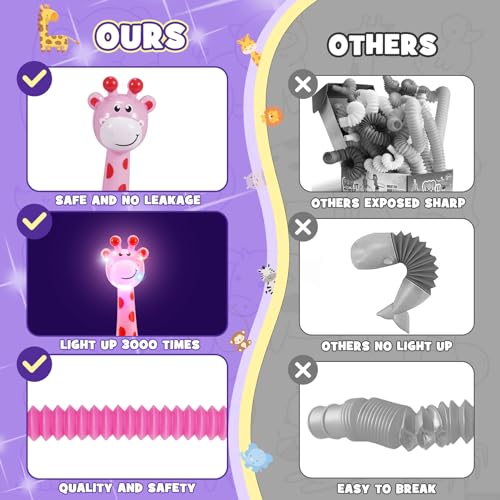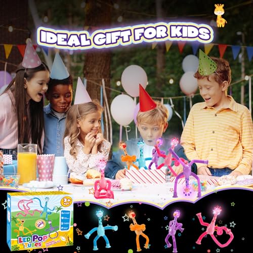 Delighkidz - Sensory Fidget Toys for Kids : 4 Pack LED Giraffe Telescopic Pop Tubes 2 3 4 5 6 7 8 Year Old Girls Boys Easter Birthday Gifts Toy for Kid Ages 2-4 Autism Toddler Travel Toy Party Favors