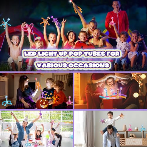 - ✨ 【LED Pop Tubes】: The sensory fidget toy set comes with colorful LED lights. Shake it and it will flash, just like magic. Perfect to keep your little baby busy and entertained! That will definitely impress your kids and bring much of fun moments during the day and night!