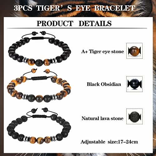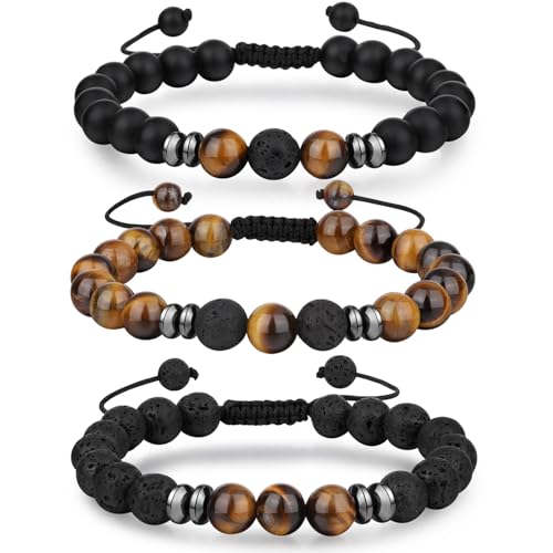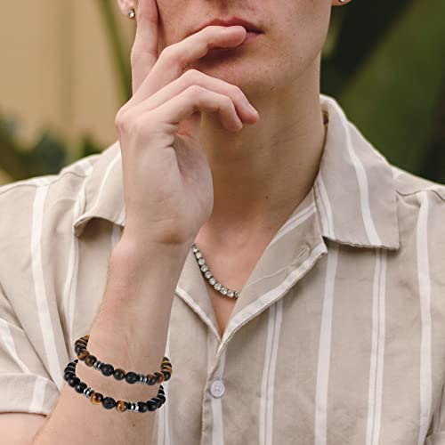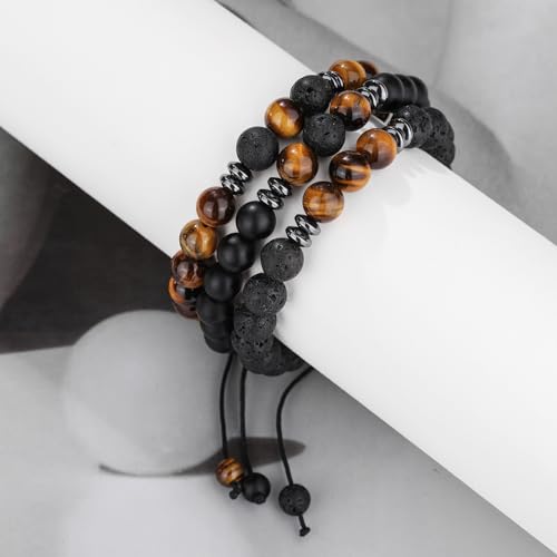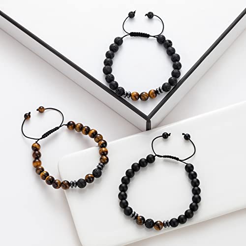 Senteria - Senteria 3-6 Pieces 8mm Beads Bracelet for Men Women Natural Stone Bracelet Mala Agate Yoga Elatics Bracelet Tiger Eye Bracelet for Men