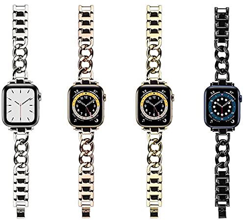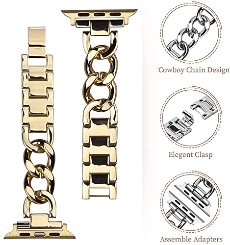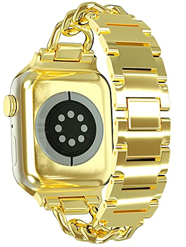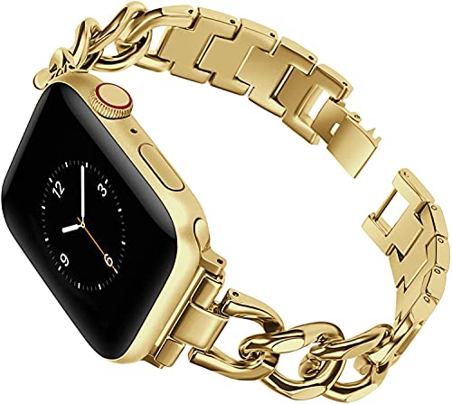 Seoaura - Compatible Apple Watch Band 38mm 40mm, Stainless Steel Metal Cowboy Chain Style Replacement iWatch Series 6 5 4 3 2 1 SE Nike+ Sports Strap Wristband (Gold, 38mm/40mm)