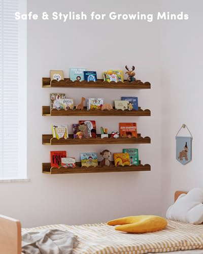 Seocry - Scalloped Wall Bookshelves for Nursery, Floating Wooden Book Shelves for Kids Room, White Nursery Shelves for Wall, Baby & Toddler Room Decor