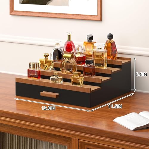 Sephyroth - Sephyroth Cologne Organizer for Men - 4-Tier Cologne Stand and Display with Drawer Storage, Hidden Compartment, Ideal Gift for man (Black Walnut)