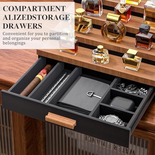 - Drawer and Hidden Storage:This cologne display includes a compartmentalized drawer perfect for storing small items like watches, rings, and keys, keeping your space tidy. Additionally, it features a hidden storage compartment for securing valuables such as cash, jewelry, and bank cards, ensuring privacy and security