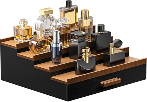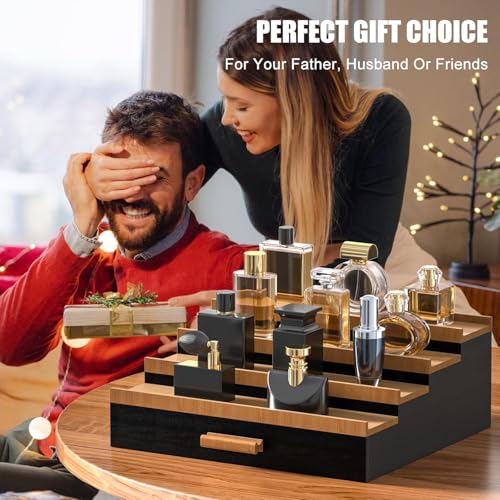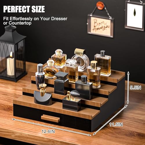 Sephyroth - Sephyroth Cologne Organizer for Men – 4 Tier Perfume Display with Hidden Storage & Drawer, Elegant Perfume Storage Box, Durable Craftsmanship, Great Gift for Man (BlackWalnut)