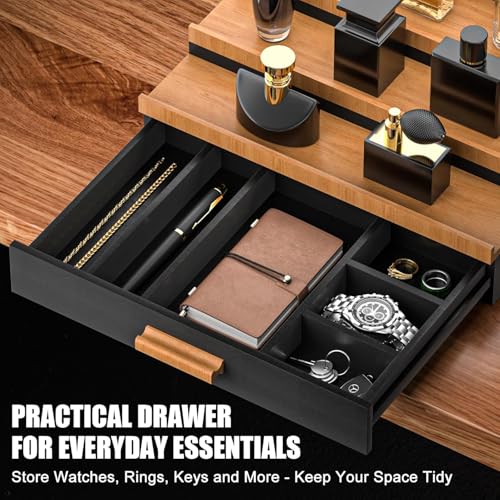 - 【Practical Drawer with Dividers】The organizer includes a practical, pull-out drawer with dividers, perfect for storing small accessories such as watches, rings, necklaces, car keys, and other valuables. This helps maximize storage space while keeping your dressing table tidy and clutter-free