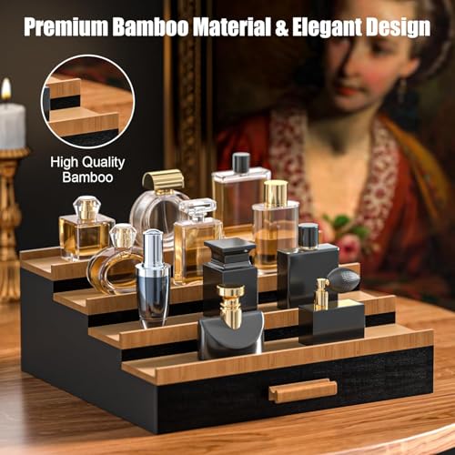 - 【Premium Quality & Exquisite Craftsmanship】This cologne organizer is crafted from high-quality Bamboo with exceptional craftsmanship, combining both durability and elegance. The polished finish and sleek design make it an eye-catching decorative piece for your dressing table, adding a touch of sophistication to any room