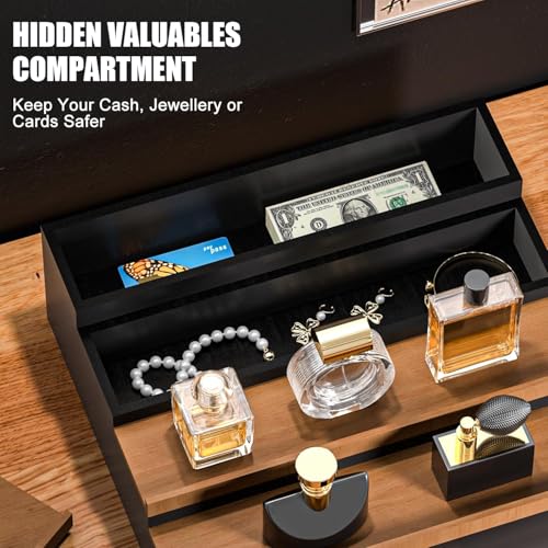 - 【Hidden Storage for Extra Security】A discreet hidden storage compartment is designed for safely storing valuable items like cash, bank cards, or jewelry. The hidden space is cleverly integrated into the organizer’s structure, providing additional security while keeping your valuables out of sight and protected