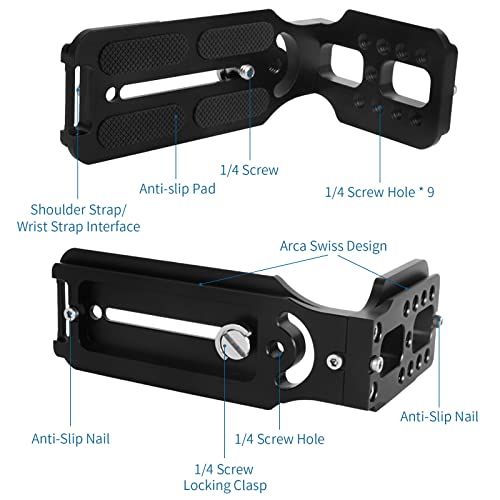 - 【Sturdy and Durable】The camera quick release plate L-bracket is made of high quality precision CNC machined anodized aluminum material, which is strong and durable, not easy to corrode or break.