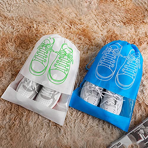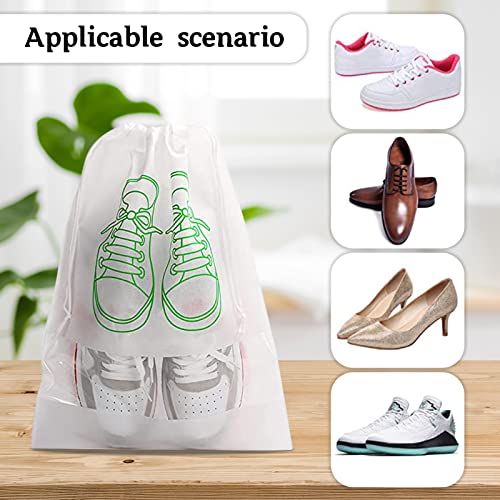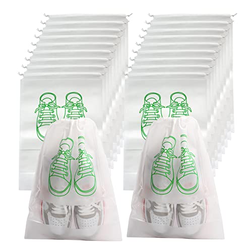 SERAPHY - SERAPHY Pack of 20 Travel Shoe Bag with Transparent Window Drawstring Dust-Proof Non-Woven Shoes Storage Bags for Daily and Travel Use white