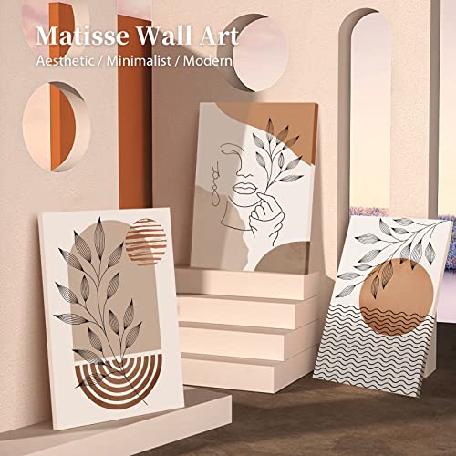 SERIMINO - SERIMINO Canvas Boho Wall Art, Minimalist Wall Decor Living Room, Mid-Century Modern Leaf Wall Decoration for Bedroom, Bohemian Moon and Line Painting for Bathroom, Home Decor Print Set