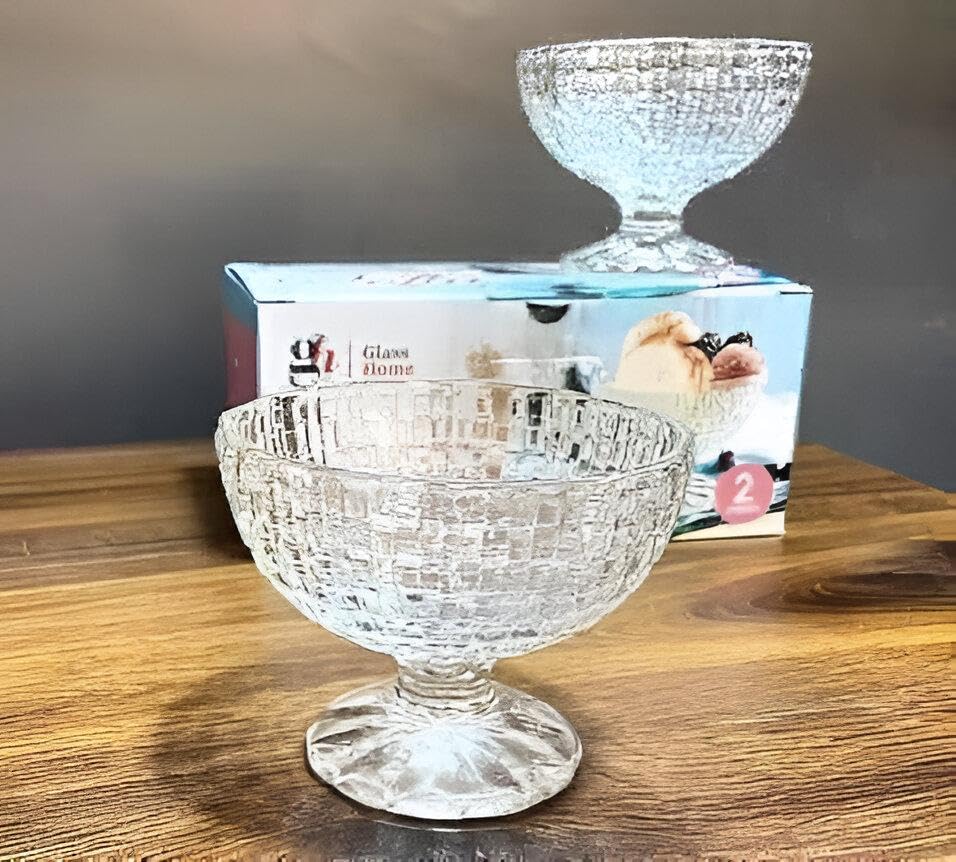 Generic - Serving Bowls - Large Crystal Glass Cups Designed for Ice Cream and Desserts, Set of Two in Clear Style with Gift Packaging, Adds Sophistication to Any Table Setting (2 اوعية ايس كريم زجاجية)