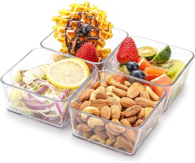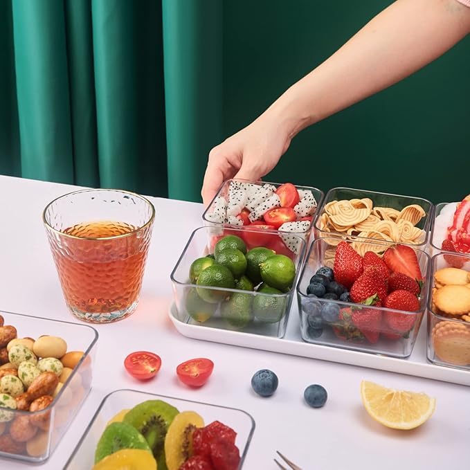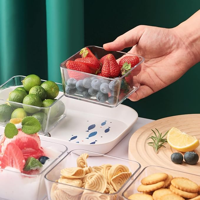 - Minimalist Design - Clear, simple design compliments any kitchen. These charcuterie bowls feature transparent and thick, elegant shape adds a modern touch on your table. The square bowls can also let you put on a nice food presentation as you like.