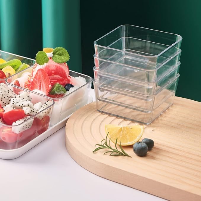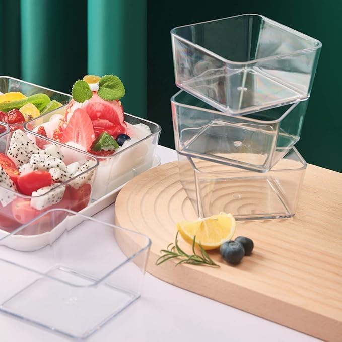 Happy Home - Serving Bowls Set 4 Mini Square Bowl 4 Piece Ultra-Strong PET Plastic Clear Bowls for Dessert, Snack, Fruit, Candy, Ice Cream, Ideal for Party