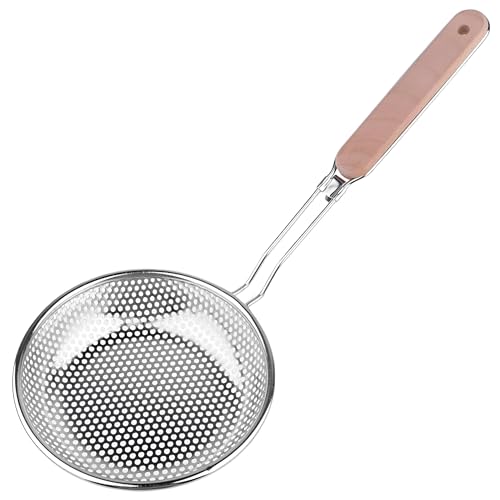 Generic - مصفاة تقديم، ملعقة مقصوصة طعام بمقبض خشبي لإزالة الأطعمة المقلية بسرعة من الزيت الساخن أو الماء (قطعة واحدة)
