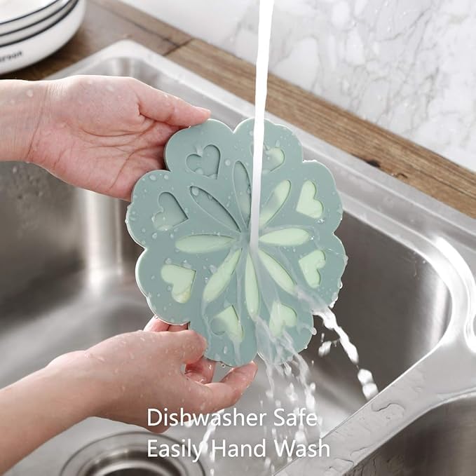 - مفرش غير قابل للانزلاق ومقاوم للحرارة العالية: مقاوم للحرارة حتى 250 درجة مئوية. احمِ سطح المطبخ أو الطاولة من الأطباق الساخنة والقدور والمقالي الساخنة مباشرةً عند إخراجها من الفرن أو الموقد. لا شيء يوضع عليها سينزلق بسبب قبضة سطحها القوية.