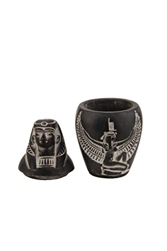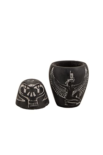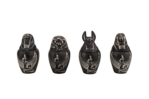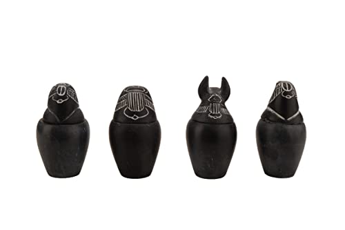 generic - Set 4 Egyptian Art Small Canopic jars Sons of Horus with goddess ma’at winged stone made in Egypt.