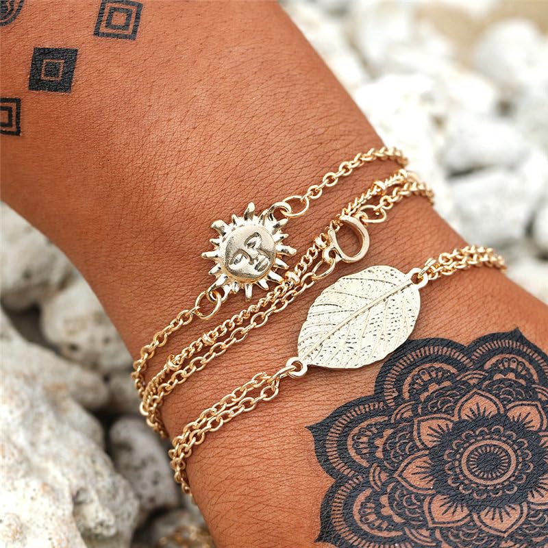 Generic - Set Bracelet Leaf Sun Bohemia Fashion Day Wife Lover Family Member Good Sister Good Sister Girlfriend Valentine's Day Mother's Day - Zinc Alloy 4 Pieces
