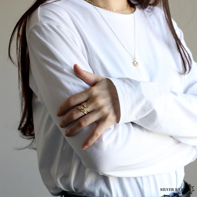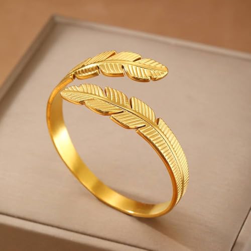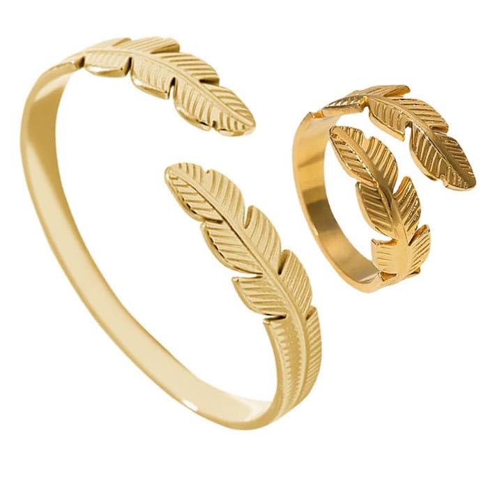 Generic - Set Jewelry Ring And Bracelet Feather Symbolizing Freedom And Grace Stainless Steel 18k Gold Plated - 2 PCS Adjustable