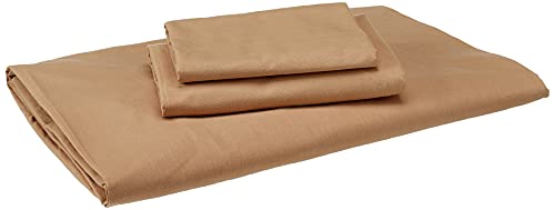 ALMAAMOUN - Set of 100% cotton plain dark beige sheet, 1 pillowcase and one pillow case from al mamoun