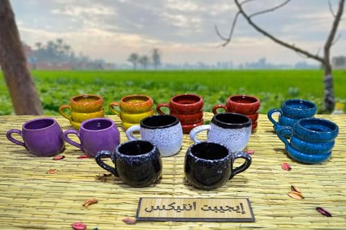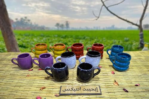 - Set of 12 Cups Healthy Pottery Painted Different Colors 100% Egyptian Handmade by Egypt Intex