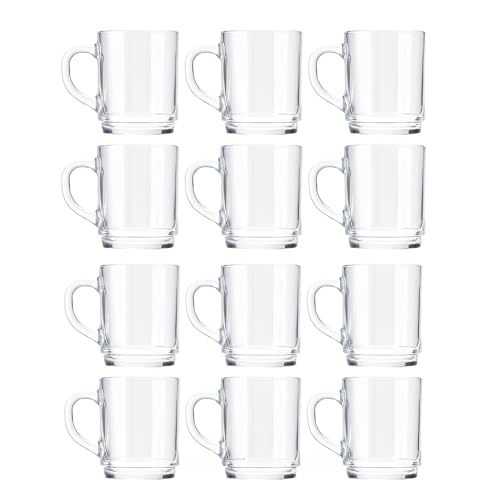 Generic - طقم فناجين شاي زجاجية شفافة - أكواب زجاجية شفافة للمشروبات الساخنة والباردة، متينة ومقاومة للحرارة، للقهوة أو الشاي، للاستخدام في المنزل والمكتب والمقاهي، 12 قطعة