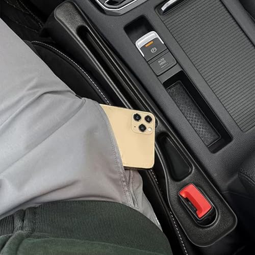 Husalsea - Set of 2 Car Seat Gap Organizer with Phone Holder, Universal Car Seat Gap Filler for Coins Keys and Cards, Leather Car Seat Gap Storage Box, Car Interior Accessory for Seat Belt Compatibility