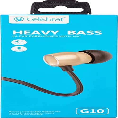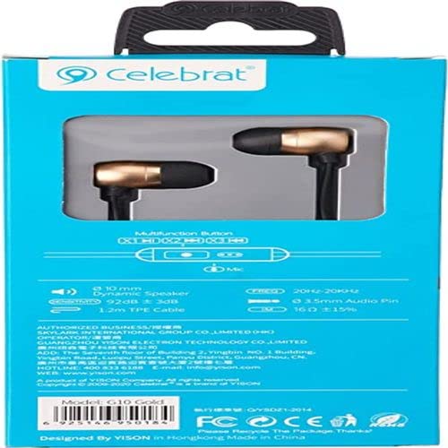 Celebrat - سماعة اذن سلكية ستيريو G10 مع ميكروفون من سيليبريت، قطعتين، لون ذهبي، في الاذن