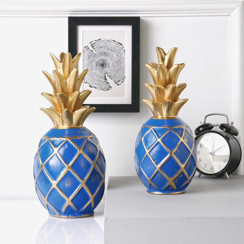 Generic - Set of 2 Decorative Pineapples – Gold and White Ceramic Pineapple Figurines for Home Decor, Shelf, Tabletop, or Kitchen – Tropical Modern Accent Pieces for Living Room or Office (Blue)