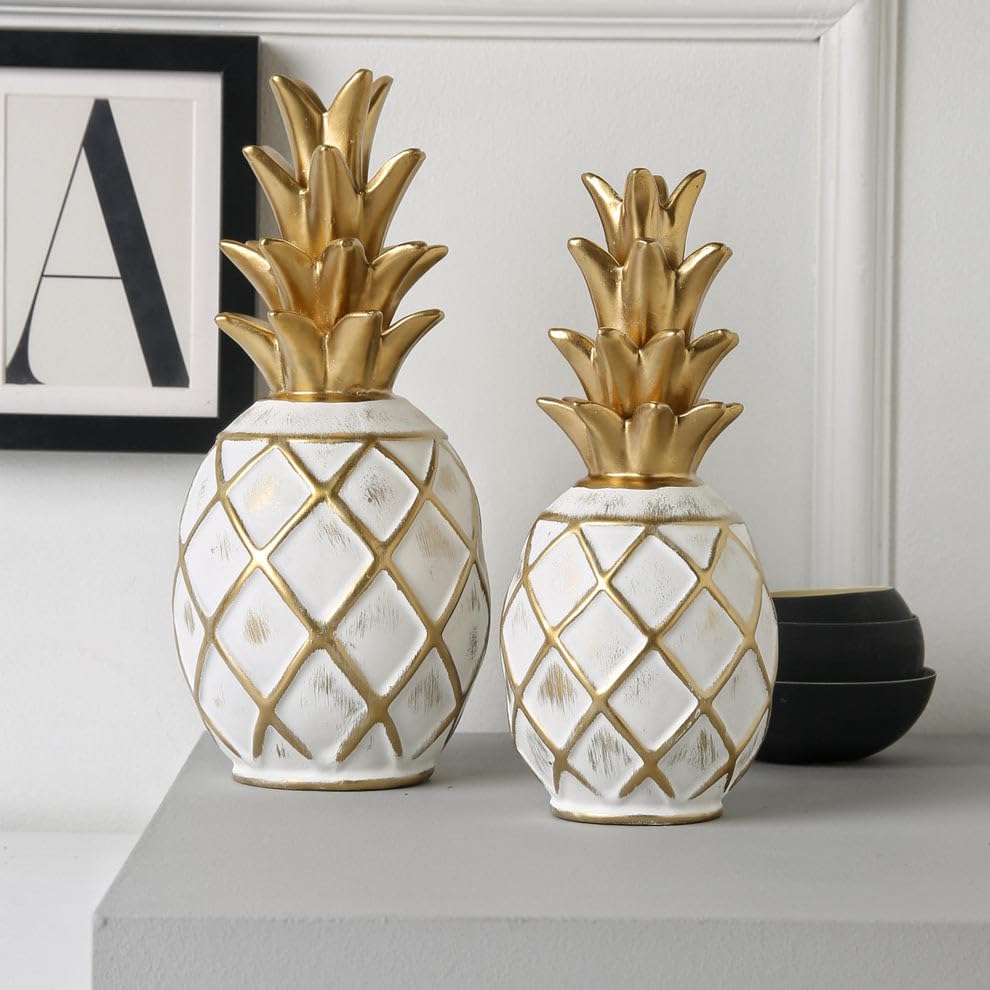 Generic - Set of 2 Decorative Pineapples – Gold and White Ceramic Pineapple Figurines for Home Decor, Shelf, Tabletop, or Kitchen – Tropical Modern Accent Pieces for Living Room or Office (white)