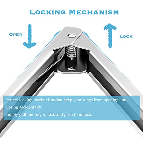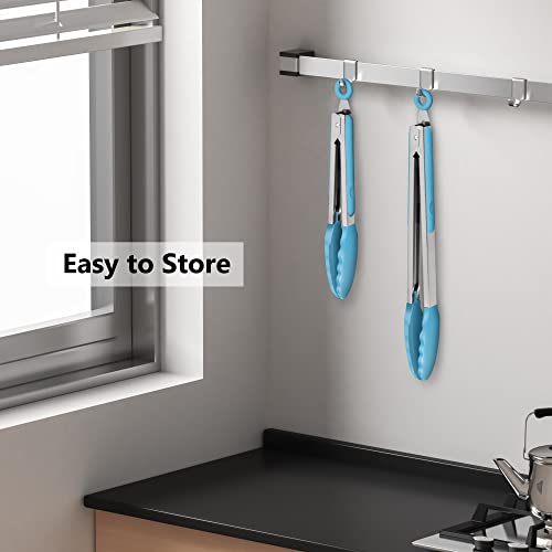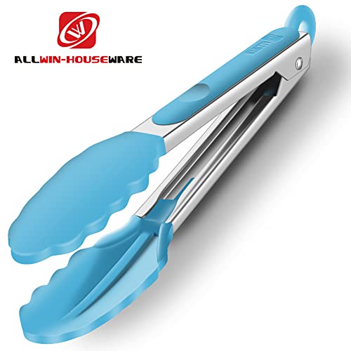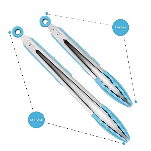 ALLWIN-HOUSEWARE W - Set of 2 Kitchen Tongs, Premium Stainless Steel Locking 9-Inch & 12-Inch Silicone Grilling Barbeque Cooking Food Tong, Blue