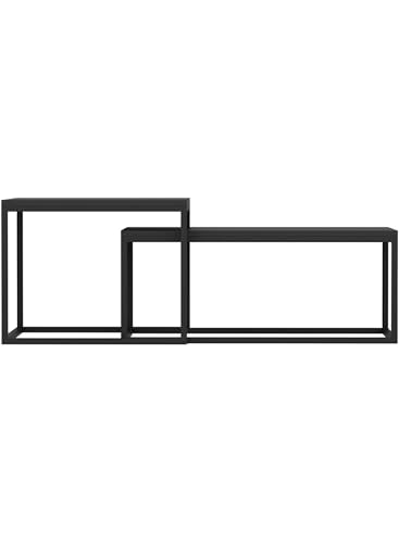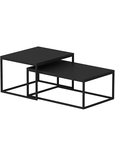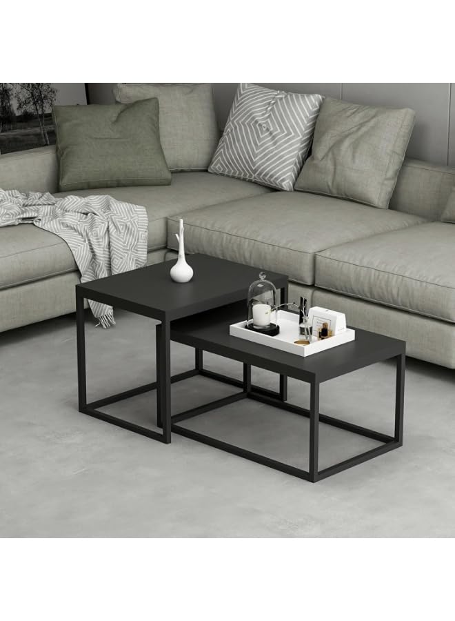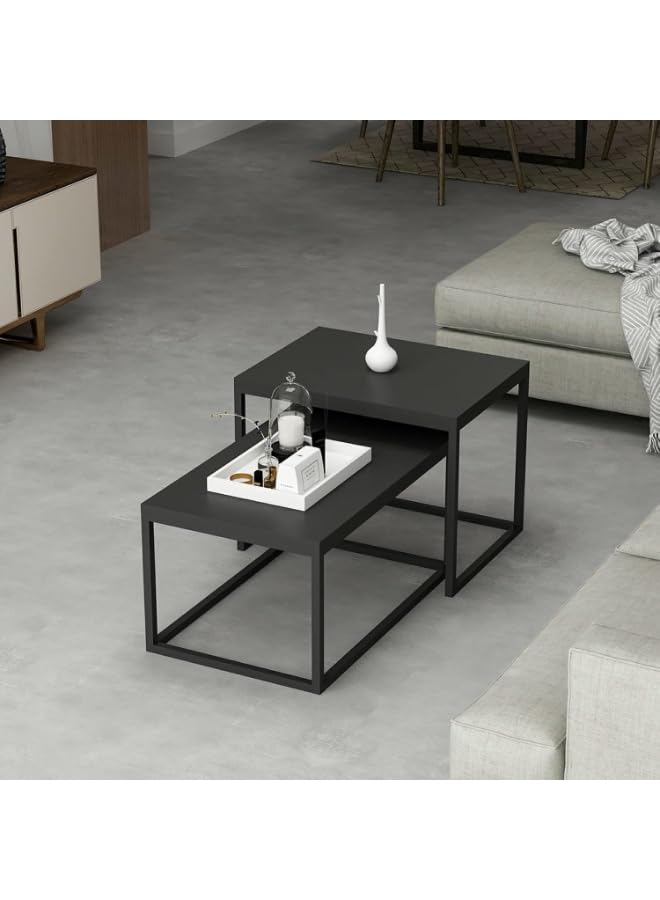Generic - Set of 2 Nesting Coffee Tables, Modern Side Tables with Metal Frame and Chipboard Top, Space-Saving Living Room Tables, Matte Black, 10 kg