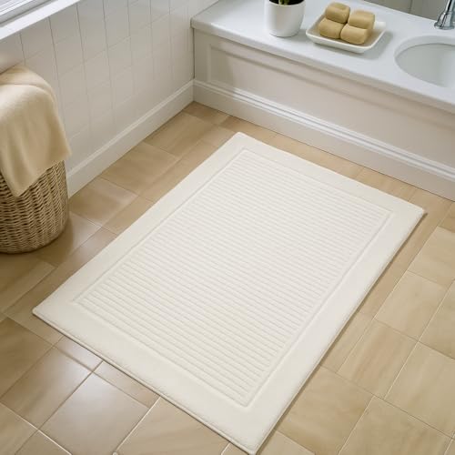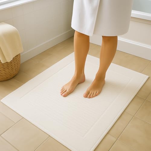 Generic - Set of 2 Soft Step 100% Cotton Bath Mat – 50x80 cm – Super Absorbent, Non-Slip, Quick Dry Bathroom Mat with Rectangular Design – Luxury Bath Rug for Home & Hotels (Off White)