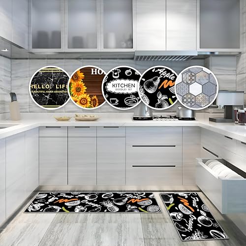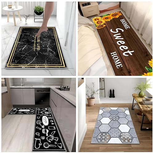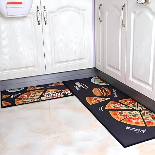 - This Kitchen Rug Set includes two pieces, providing a coordinated look for your kitchen space. These mats are designed to enhance the aesthetic appeal of your kitchen while providing practical functionality.
