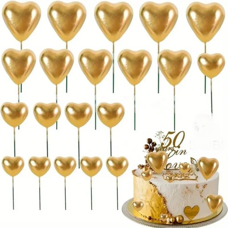 Generic - Set of 20 Gold Heart Different Sizes Cork Cake Topper Wedding Engagement Cake Topper Cork Cake Topper Cork Cake Topper for Wedding Engagement Cake Topper