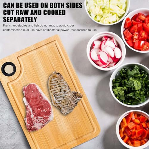 - REVERSIBLE As the bamboo kitchen board is flat on both sides, it can be used on both sides. You can separate raw and cooked foods to preserve the original taste of your food, and the bamboo cutting board is naturally antimicrobial, which means it neutralizes bad odors and prevents the formation of bacteria