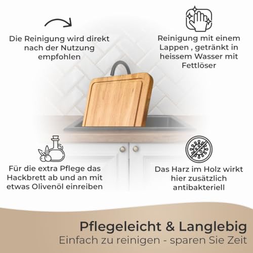 - Natural and easy care: oiled surface for extra protection and elegant look. The chopping boards are easy to clean by hand, durable, timeless and sustainable.
