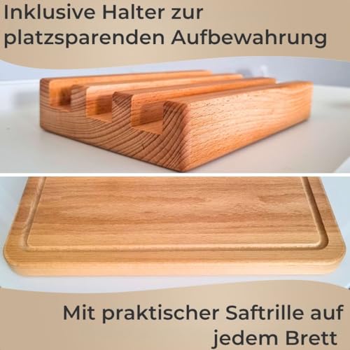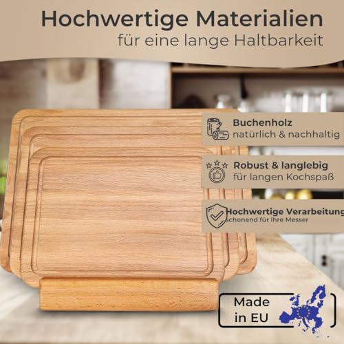 TOPANBIETER 999 - Set of 3 Chopping Boards, Made in the EU, with Stand in Premium Quality Beech, Size 27/30/40 cm, Kitchen Board Set for Meat, Bread, Vegetables, Natural Wooden Boards, Work Board, Chopping Boards
