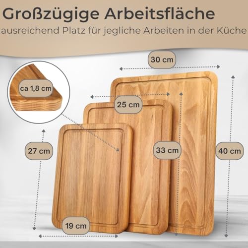 - Practical juice groove: each wooden board is equipped with an all-round juice groove - perfect for clean work when cutting meat or juicy vegetables without losing liquid.