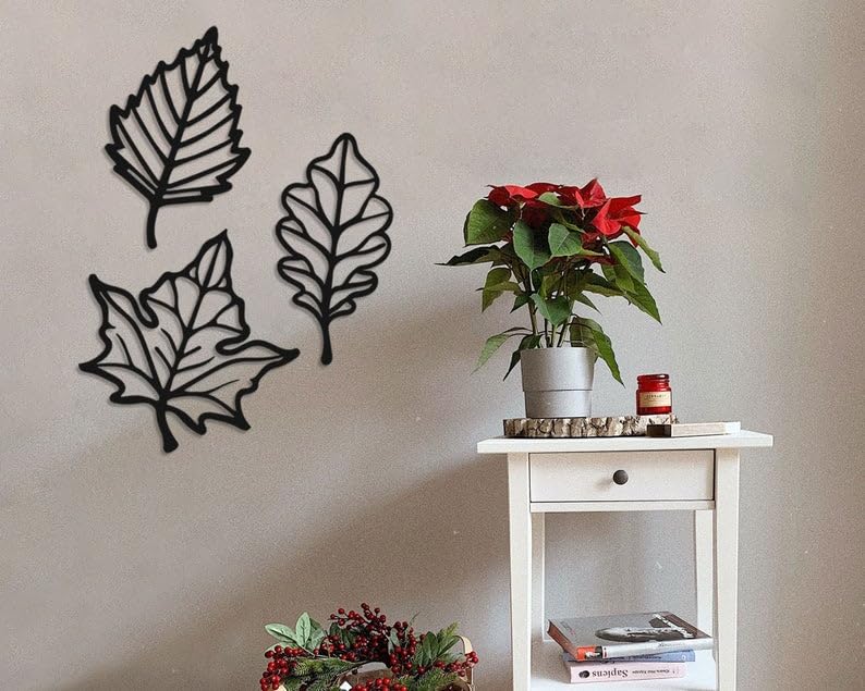 Generic - Set Of 3 Floral Leaves Wall Decor 80x80cm Black WQ.WA134.13