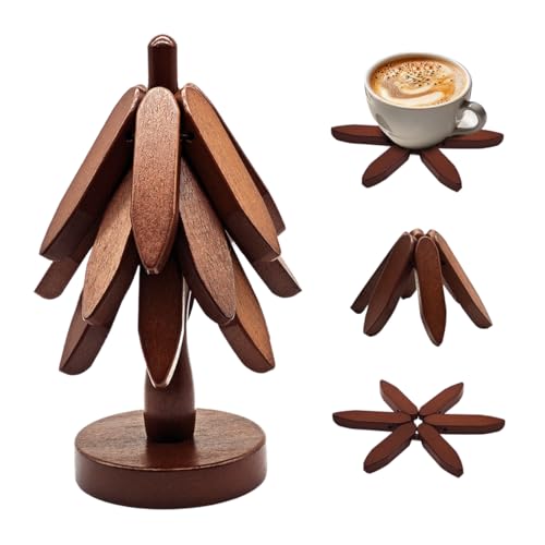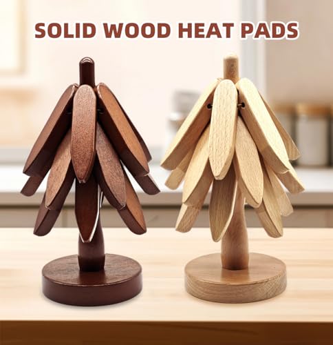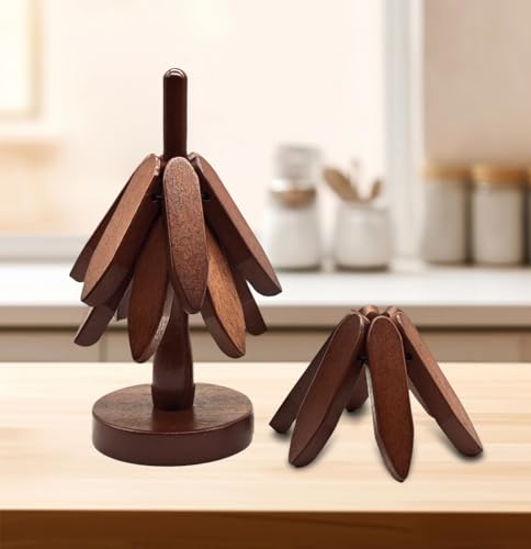TENIKHMPL - Set of 3 Kitchen Table Decorations Collapsible Wooden Hot Pot and Pan Mats Christmas Tree Appearance Placemat Decorations Wooden Placemats (Brown)