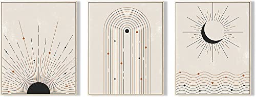 Generic - مجموعة لوحات فنية جدارية بتصميم بوهو عصري لمنتصف القرن مرسومة بنمط فني تجريدي بسيط للشمس والقمر لديكور منتصف الحديث بدون اطار مقاس 8×10 بوصة 3 قطع متعدد الألوان
