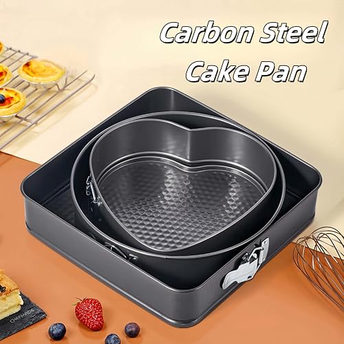 Ceramoon - طقم صواني خبز بقاعدة متحركة من 3 قطع، قالب على شكل قلب مقاس 15 سم وقالب دائري مقاس 20 سم وقالب مربع مقاس 25 سم، قوالب كيك غير لاصقة مخصصة لتحضير التشيز كيك لمناسبات عيد الحب وأعياد الميلاد والكريسماس