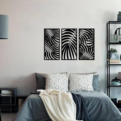 Generic - مجموعة لوحات فنية جدارية موديل WQ.WA142.15 بتصميم أوراق شجر استوائية من 3 قطع، مقاس 60 × 60 سم، لون أسود
