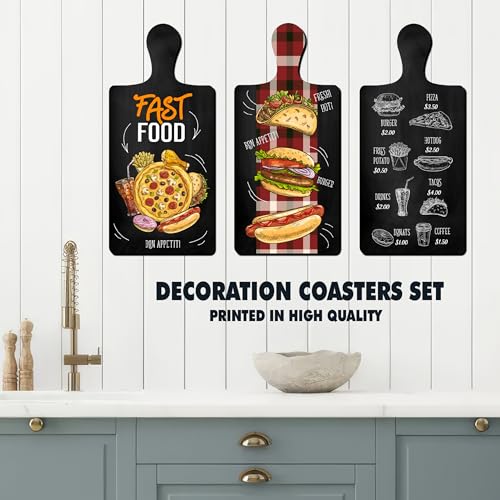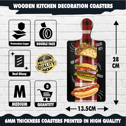 Generic - Set of 3 Wooden Wall Decor Coaster or Cutting Plunge with Black Chic Design Double Face Sticker 28x13.5cm High Quality Glossy Print with Dust and Corrosion Resistant Coating
