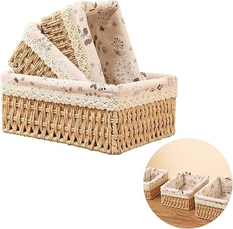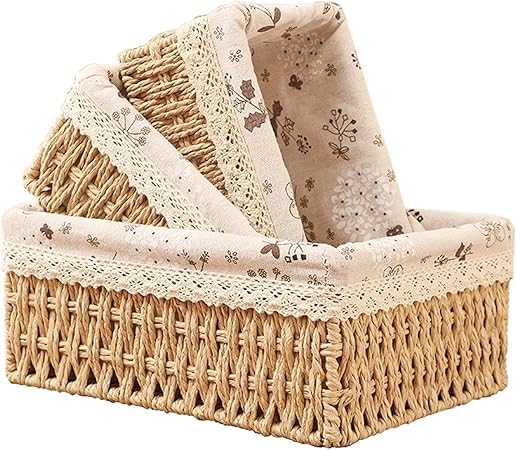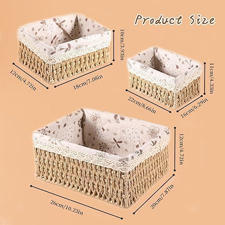 - Simple and practical: woven storage baskets Simple design and warm colors meet the beauty family definition. To meet most modern home decorations. Three different storage baskets meet different storage needs and also can be a gift for your friends and family.