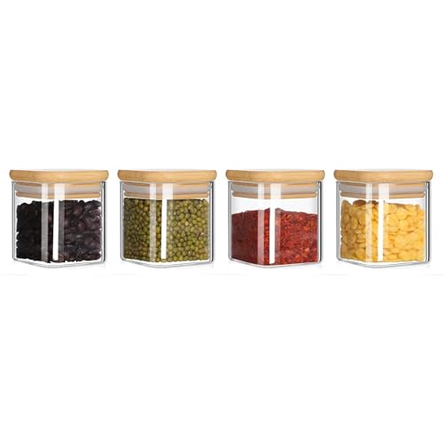 - Enough for Needs: the package includes 4 pieces of airtight square glass jars with bamboo lids, simple yet elegant, which is sufficient to satisfy your daily use and replacement needs and can help you easily sort and organize different foods; You can also share them with your friends and family