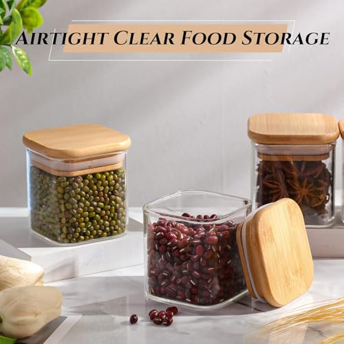 - Airtight Lids: these small square spice jars come with bamboo lids, ensuring tight sealing and keeping air and odors out, thus keeping your food inside dry, clean and fresh for a longer time; Also, the lids are easy to remove, allowing you to take or refill the food with ease