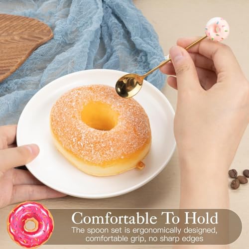 Generic - Set of 4 Gold Donuts Shape Mini Spoons Stainless Steel Serving Sugar Chocolate Jam Spoon Elegant and Attractive Shape for Modern Kitchen | By Generic