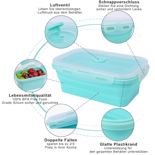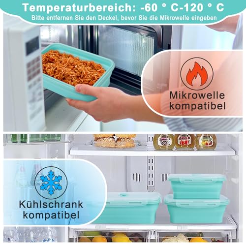 - Foldable and space-saving: Foldable design for space-saving savings. This foldable lunch box can be easily folded to 1/3 of the original height and stacked on top of each other, saving 2/3 space for you. When unfolded, our folding bowl with lid offers enough space for your meals. These foldable containers with lids fit in almost all kitchen and pantry compartments or a cabinet and drawers, perfect for small kitchens, dormitories and caravans.