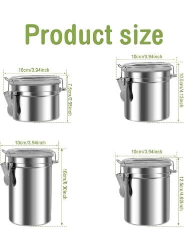 generic - مجموعة من 4 علب مطبخ من الستانلس ستيل، مجموعة علب عملية مع غطاء شفاف ومشبك قفل، مطبخ مريح C